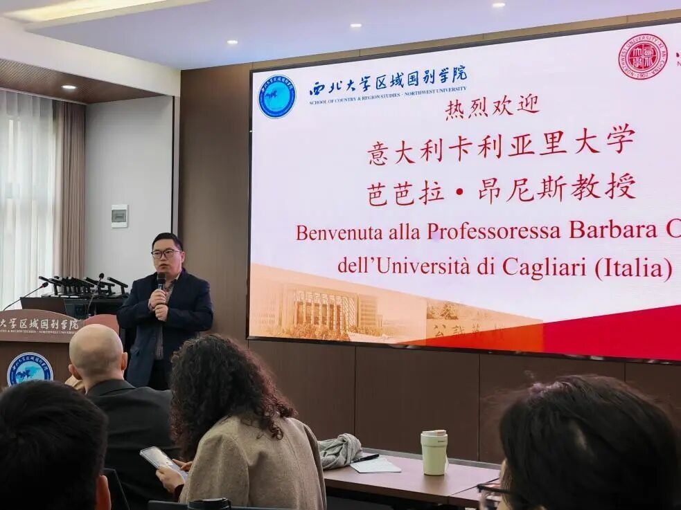 2025年10月27日上午,意大利卡利亚里大学政治与社会科学学院教授芭芭拉·昂尼斯(Barbara Onnis)应邀在西北大学区域国别学院树人启智报告厅作了题为“超越欧洲中心主义:区域国别研究视角与现代中国及东亚史研究新史料”的专题讲座。本场讲座由西北大学区域国别学院副院长席会东主持,区域国别学院直属党支部书记任惠莲、马韬教授参与讨论,学院多名师生听取了讲座并参加互动。