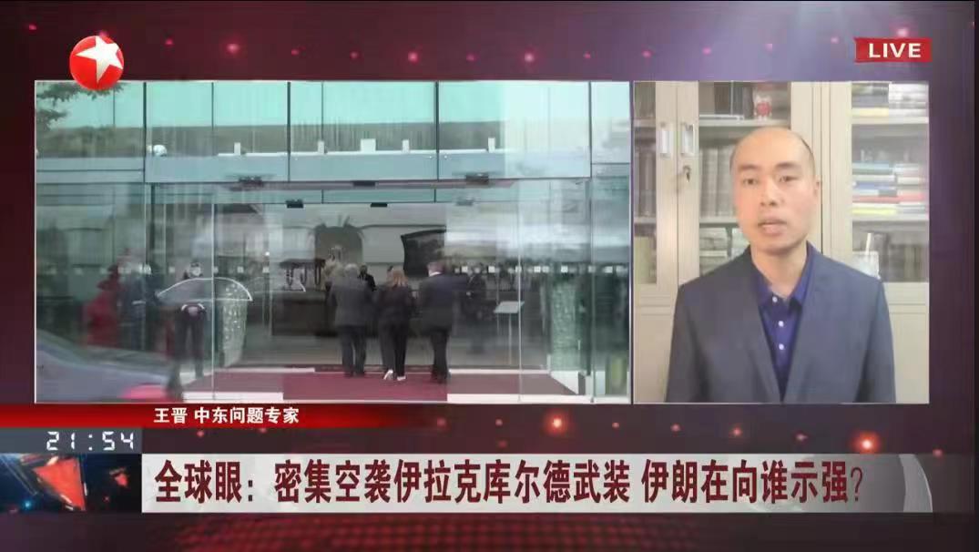 2022年10月1日,中东研究所副教授王晋就伊朗和伊拉克关系,接受了东方卫视“今晚”节目的采访。王晋认为,伊朗向伊拉克北部大规模发射导弹,意在打击当地的反伊朗势力,并向伊拉克库尔德自治区政府施压,阻止某些团体向伊朗的偷渡和渗透活动。