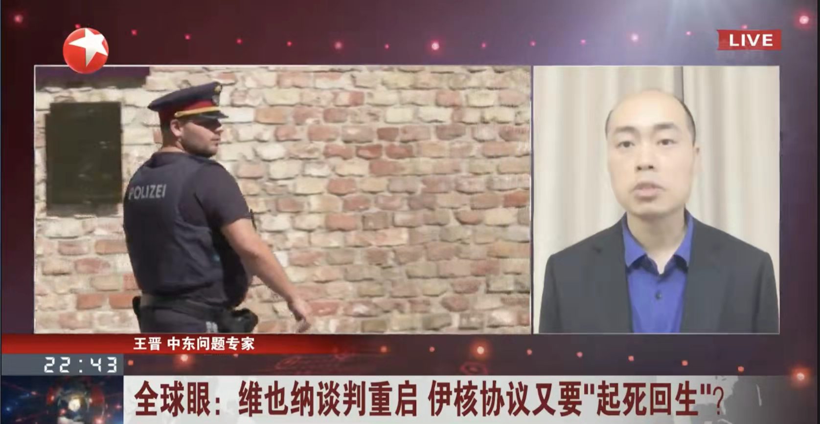 2022年8月5日,中心研究员王晋,就伊朗核问题,接受了东方卫视“今晚”节目的采访。王晋认为,伊朗核协议重启的相关谈判,仍然面临较大挑战,伊朗核问题其他相关的当事方的斡旋是否成功,取决于伊朗和美国决策者是否就相关议题作出让步。