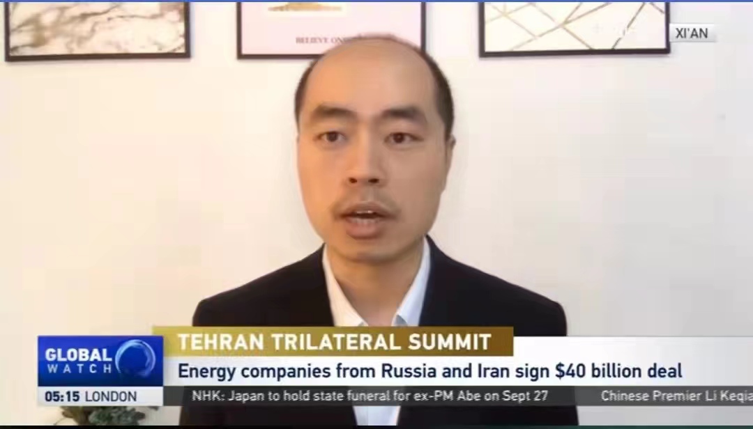 2022年7月20日,中东研究所副教授王晋,就俄罗斯总统普京访问中东,接受了中央电视台英语频道“环球观察”(Global Watch)的采访。王晋认为,俄罗斯、土耳其和伊朗三方会议,直接原因是商谈叙利亚问题,但是在当前国际局势剧烈变动的背景下,三方商谈机制可能升级,涉及议题也会在未来进一步拓展。