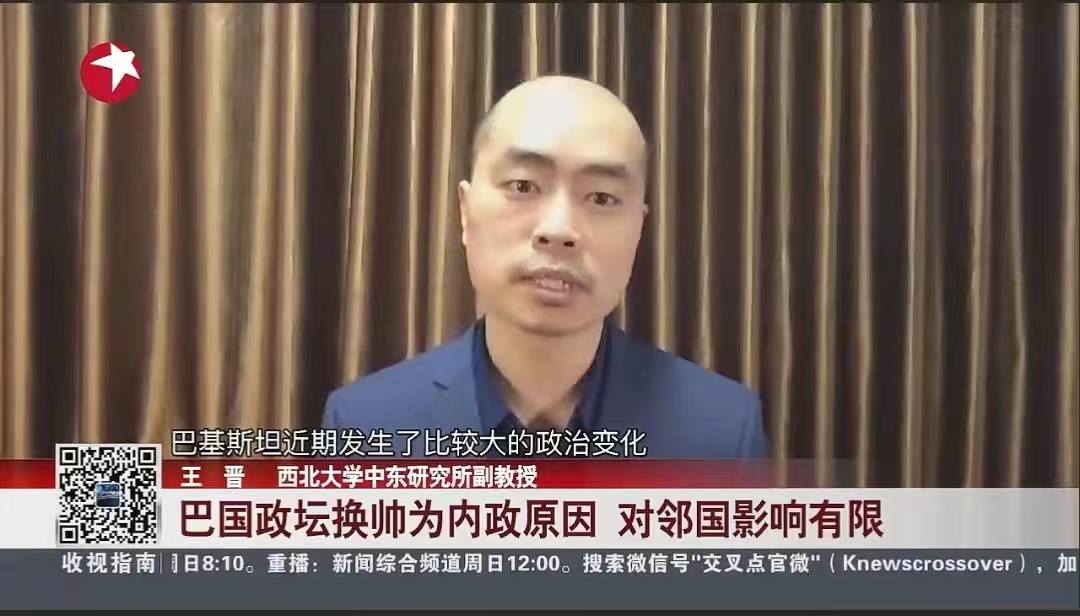 2022年5月6日, 中东研究所副教授王晋,就巴基斯坦国内政局,接受了东方卫视“环球交叉点”的采访。王晋认为,巴基斯坦新政府上台,会继续致力于发展对华友好关系,同时巴基斯坦与印度的关系,很可能会出现缓和。
