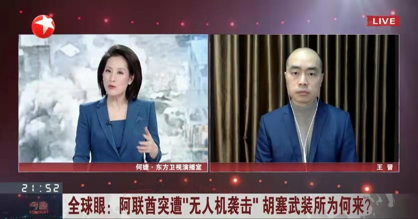 2022年1月17日,中东研究所副教授王晋就也门问题,接受了东方卫视《今晚》的采访。王晋认为,阿联酋遭到也门胡塞武装的无人机袭击,将使得也门的和平进程受阻,也将影响伊朗核谈判。