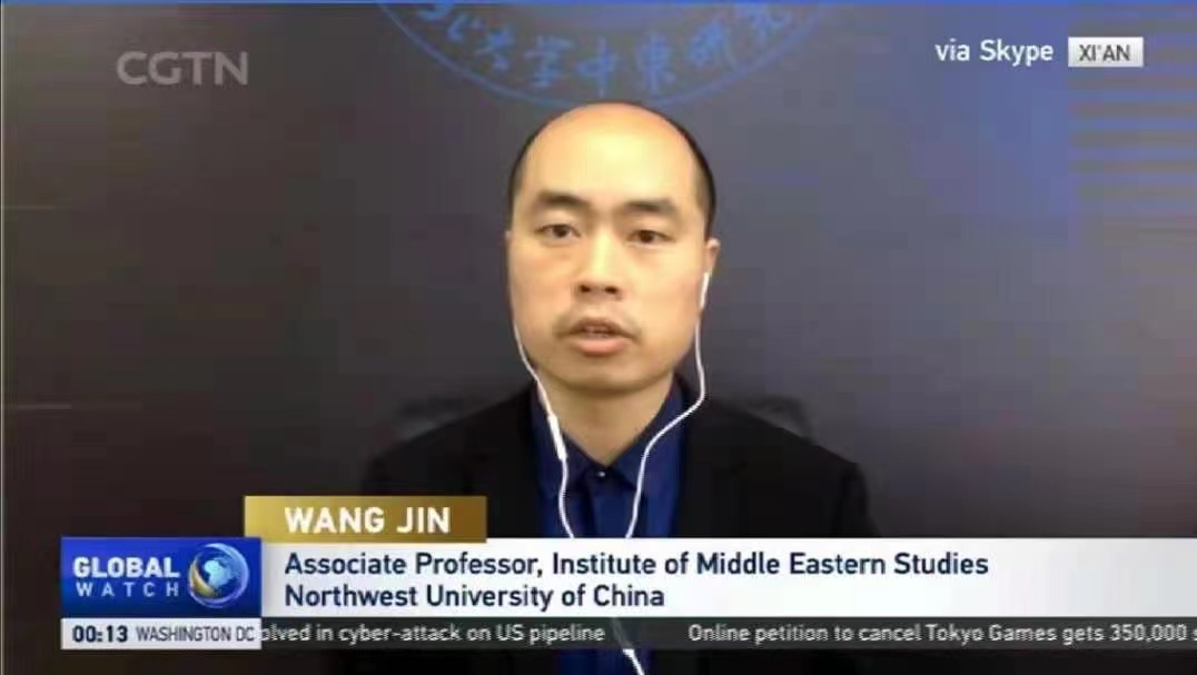 2021年5月14日,中东研究所副教授王晋就巴以冲突,接受了中央电视台英语频道《环球瞭望》的采访。王晋认为,巴以冲突很可能会继续升级,需要美国担负应有的责任,不可一味偏袒以色列。