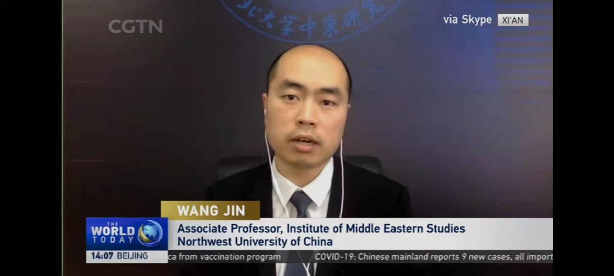 2021年5月13日,中东研究所副教授王晋就巴以冲突,接受了中央电视台英语频道《环球瞭望》的采访。王晋认为,巴以冲突受到多方面因素影响,此轮冲突烈度增加,未来几天冲突很可能会继续持续。