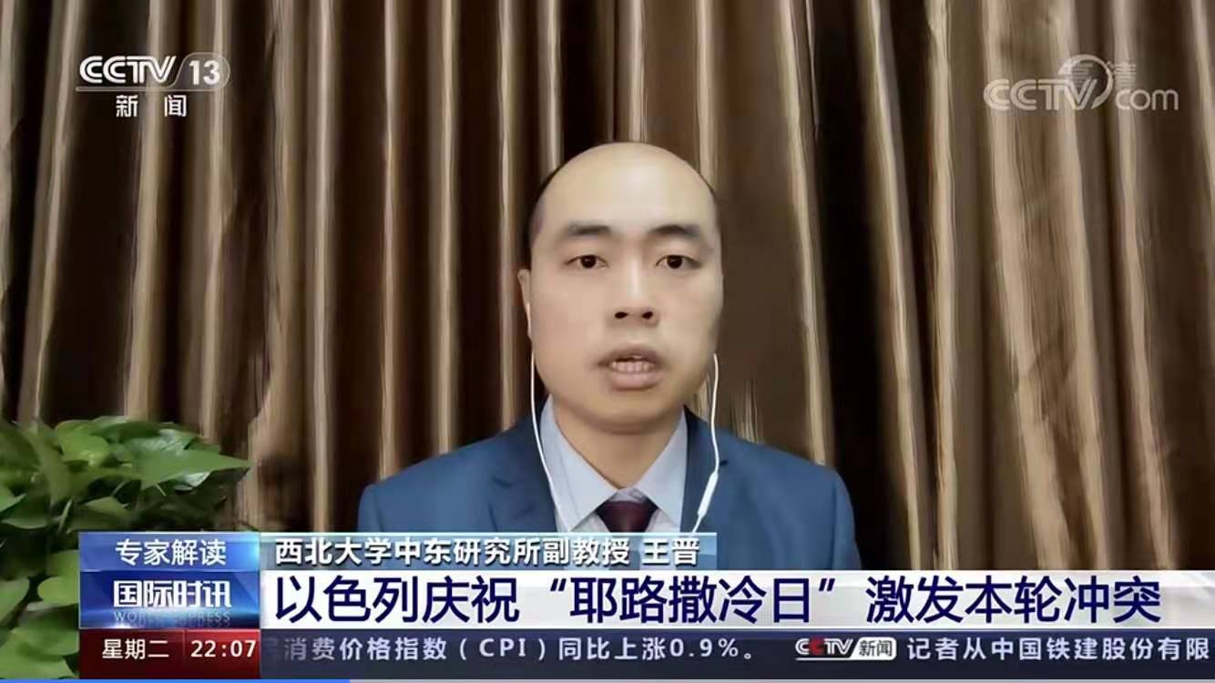 2021年5月12日,中东研究所副教授王晋就巴以冲突,接受了中央电视台新闻频道(CCTV-13)《国际时讯》节目的采访。王晋认为,巴以冲突爆发和升级,是多个因素叠加的结果,未来巴以冲突烈度很可能继续提升。