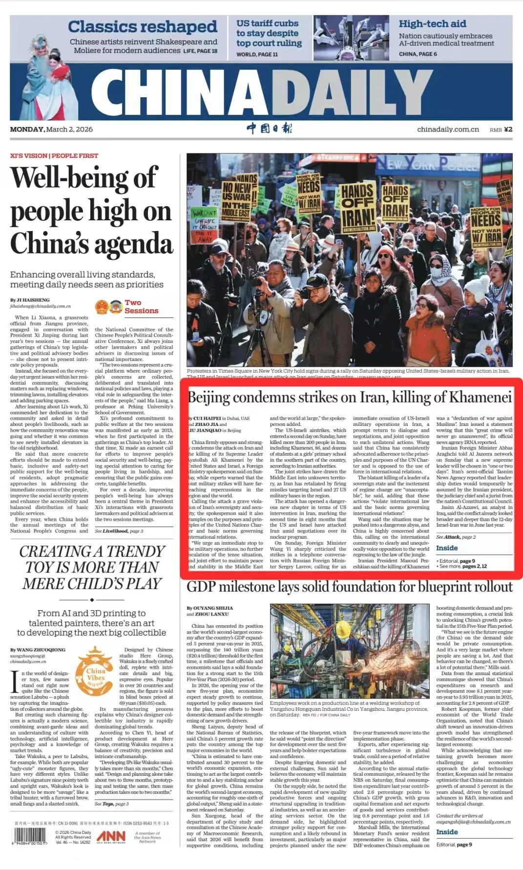 2026年3月2日,区域国别学院闫伟教授就中东紧张局势接受China Daily采访。