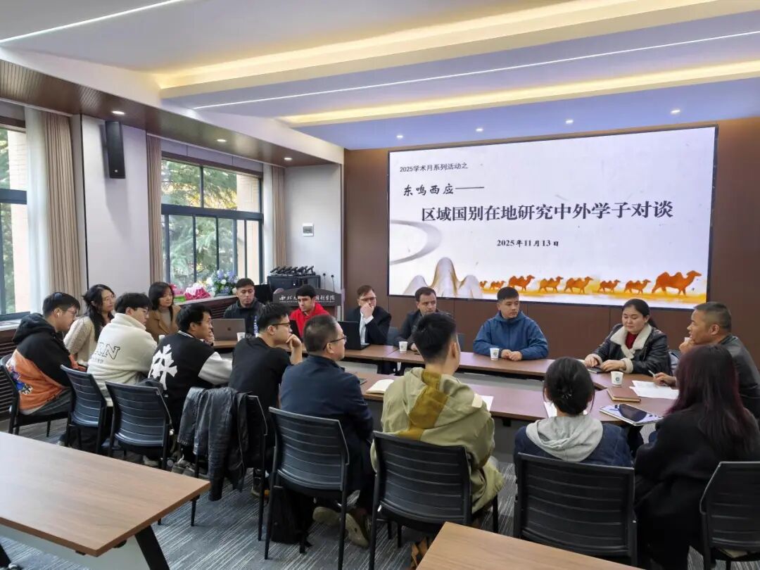 2025年11月13日,区域国别学院在长安校区“树人启智”报告厅成功举办“东鸣西应——区域国别在地研究中外学子对谈”主题交流活动。本次活动汇聚了来自伊朗、阿富汗、塔吉克斯坦、土库曼斯坦等“一带一路”沿线国家的留学生代表,以及区域国别学院的硕博士研究生等,区域国别学院党支部书记任惠莲出席对谈活动,对谈由区域国别学院副院长李福泉主持。