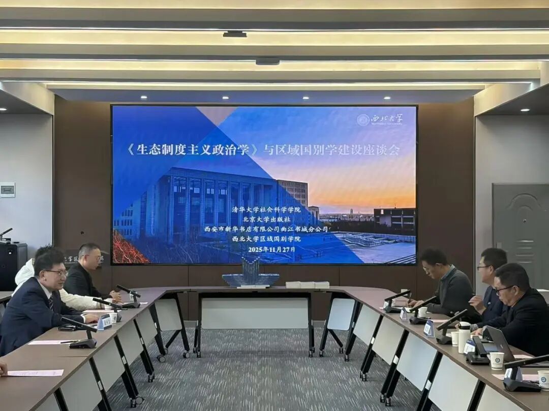 11月27日下午,清华大学社会科学学院副院长、长聘教授赵可金应邀赴西北大学区域国别学院,在树人启智报告厅出席“《生态制度主义政治学》与区域国别建设”座谈会。北京大学出版社市场代表屈瑶、西安市新华书店有限公司曲江书城分公司楼层经理李一凡一同参会。座谈会由西北大学区域国别学学院副院长、中东研究所副所长闫伟教授主持,学院代表师生参与座谈。