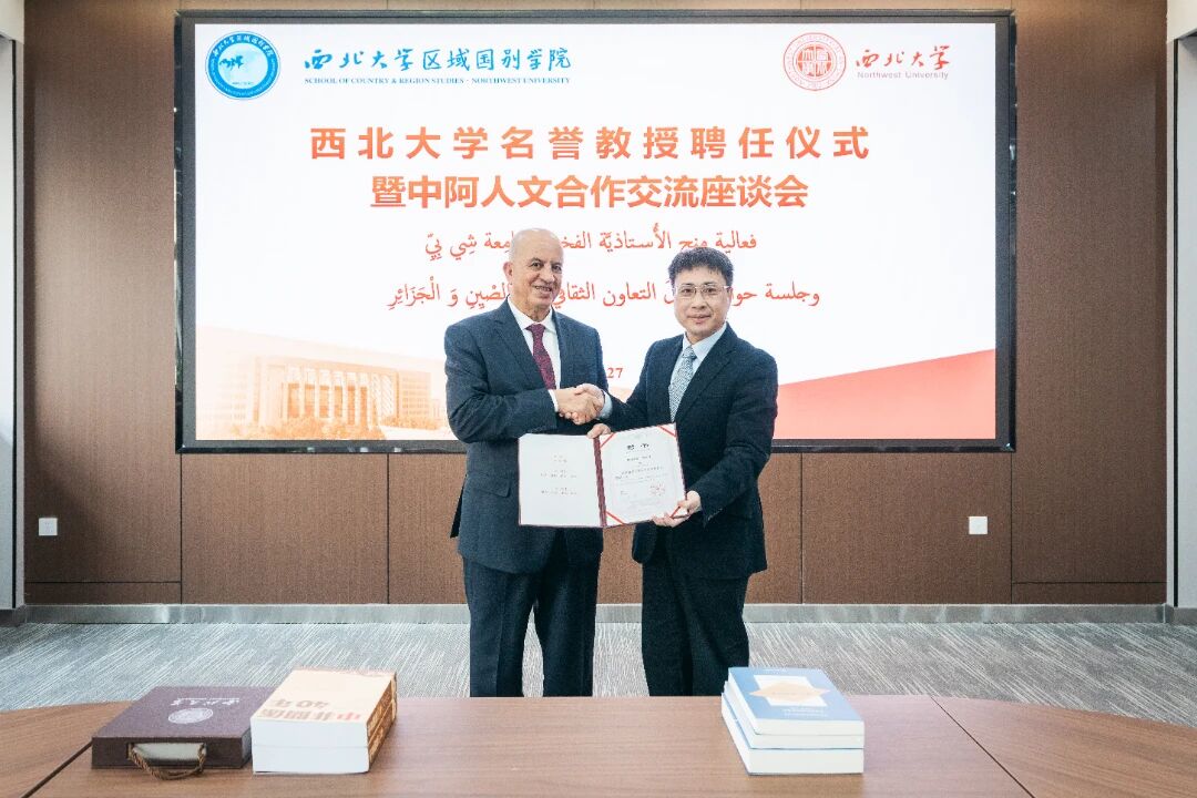 彭楚云对伊斯梅尔•德贝什教授受聘为西北大学名誉教授表示祝贺。他充分肯定西北大学在促进中阿学术交流与文明互鉴方面取得的丰硕成果,表示西欧与非洲传播中心愿与西北大学、阿尔及利亚—中国友好协会深化合作,共同推进人文交流、学术翻译与智库对话等项目。聘任仪式后,与会专家学者围绕中阿关系的历史与现状、文明互鉴、区域国别研究等议题展开深入研讨。