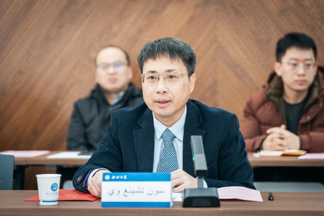 聘任仪式上,孙庆伟为伊斯梅尔•德贝什先生颁发名誉教授证书,对他受聘西大表示诚挚欢迎和感谢。孙庆伟介绍了学校的发展历史和区域国别学科建设成效。他指出,西北大学在中东及阿拉伯国家研究领域有深厚的学术传统,产出丰硕成果,为推动中国和中东、阿拉伯国家学术合作和文明交流互鉴发挥了重要作用。他表示,德贝什教授长期致力于中阿交流合作,此次聘任对深化中阿人文合作、推进中阿文明互鉴具有重要意义,期望德贝什教授对学校的学科建设、人才培养与国际交流积极建言献策,为推动中阿文化交流、构建中阿命运共同体贡献更大力量。