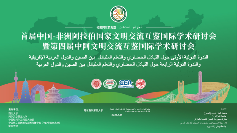 值此首届中国—非洲阿拉伯国家文明交流互鉴国际学术研讨会暨第四届中阿文明交流互鉴国际学术研讨会召开之际,我们相聚阿尔及尔,弘扬中非、中阿友好精神,推动构建新时代中非、中阿命运共同体,为全球南方国家携手迈向现代化贡献智慧。
