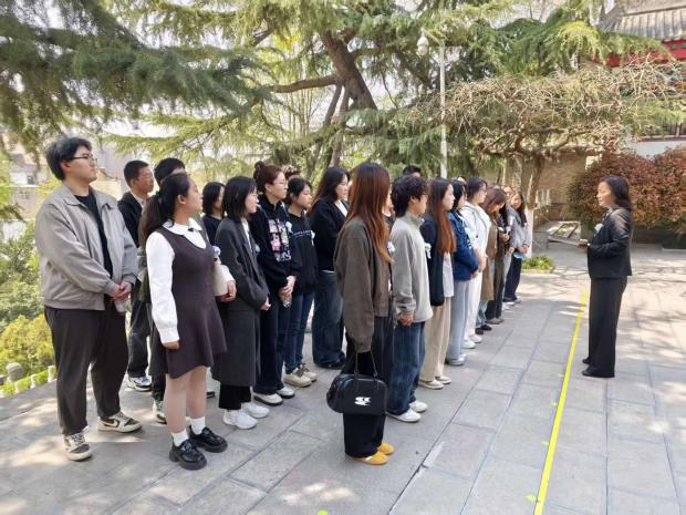 仪式结束后,在陵园内,任惠莲书记现场讲授“微团课”。她以杨虎城将军的民族大义与爱国精神为主线,讲述了将军从投身辛亥革命到发动西安事变的光辉事迹,结合区域国别学科特色,围绕“英烈精神的时代价值”“青年学子的使命担当”等话题展开深刻阐释。她指出,区域国别人才培养要始终以“国之大者”铸魂,锚定国家战略需求,以“经世致用”赋能、以“融通中外”聚力,青年学子应将专业学习与家国情怀紧密结合,将学术追求与国家发展战略同频共振,真正做到学以致用、学以报国,为中华民族伟大复兴贡献青春力量。