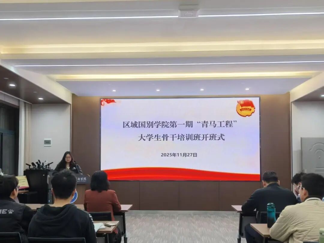2025年11月27日晚,区域国别学院第一期“青年马克思主义者培养工程”(以下简称“青马工程”)开班仪式在学院“树人启智”报告厅举行。学院党支部书记任惠莲、团委专职团干牛少轩出席仪式,第一期全体学员参加活动。仪式由张恺欣同学主持。