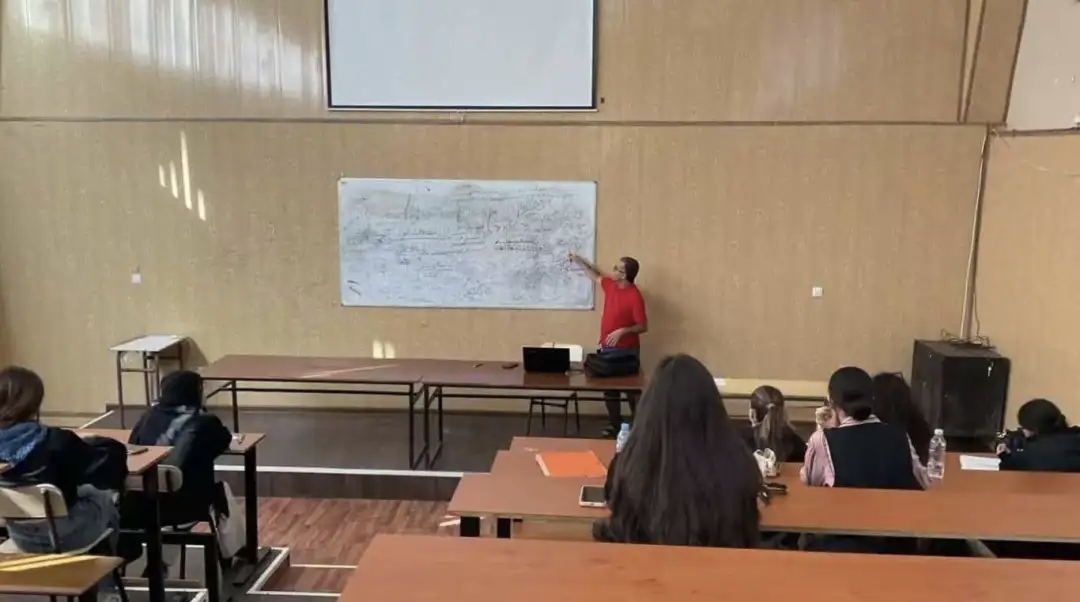 出国交流访学的首要任务是学习。学院的老师们经过商议后决定安排我上三节课分别是政治经济学、地缘政治与国际关系与阿尔及利亚近代史,但是学院的老师跟我解释由于硕士的英语课程明年才开始,今年的英语课程只有大一学生才有,所以我需要和大一学生一起上课,但因为我是研究生,活动自由度比较大可以有选择地上课。阿国大学课程一般每节课三个小时,每50分钟会有10分钟的休息时间,有些课甚至跨越了午餐和午休时间,稍显冗长,在内容上相较国内也比较基础。在教学方式上,大多数教师不用多媒体教学,而是按照讲义内容走并且不断地解释相关概念并辅以例证加强学生的理解。